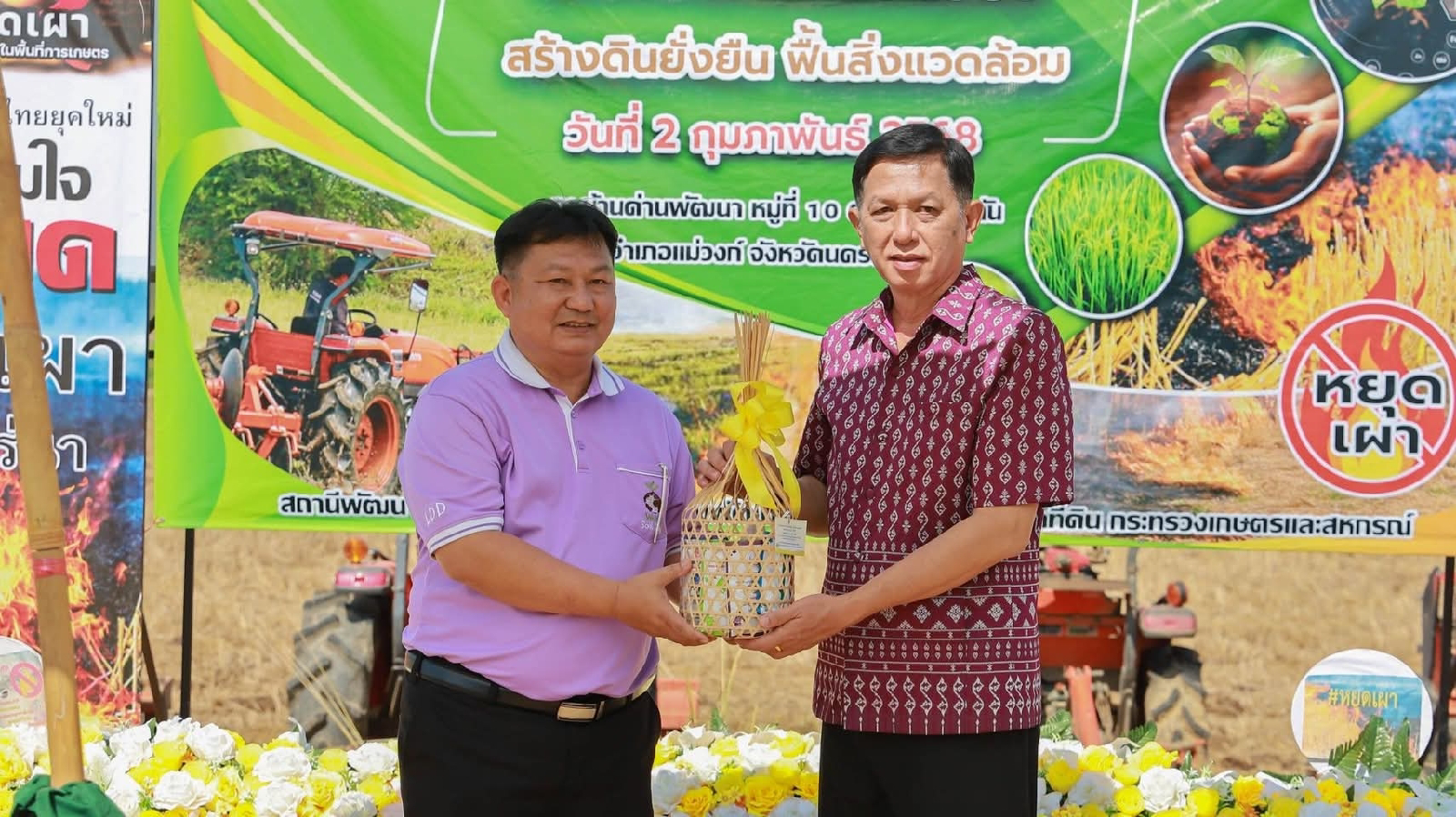 เพื่อเป็นตัวอย่างให้กับเกษตรกรในพื้นที่ด้วย พร้อมทั้งโปรยเมล็ดปอเทืองเพื่อสร้างความตระหนักให้เกษตรกรทำเกษตรกรรมที่ไม่เผาฟางและต่อซัง แล้วปรับเปลี่ยนมาไถกลบแทน ซึ่งการไถกลบตอซัง เป็นวิธีการปรับปรุงบำรุงดินที่ทำได้ง่าย เกษตรกรสามารถทำได้ด้วยตนเอง การไถกลบหลังการเก็บเกี่ยวอย่างสม่ำเสมอ จะช่วยเพิ่มอินทรียวัตถุลงดิน ช่วยให้ดินดีมีความอุดมสมบูรณ์ และผลผลิตก็จะเพิ่มสูงขึ้น ที่สำคัญคือช่วยลดปัญหาหมอกควัน และฝุ่นละอองขนาดเล็ก (PM2.5)